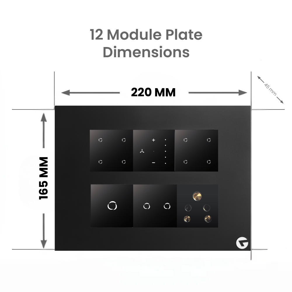 ✅ 12 Modular Configuration – 8 Switches + 1 Fan + 1 Switch 24A + 1 Switch 16A + 1 Socket.
