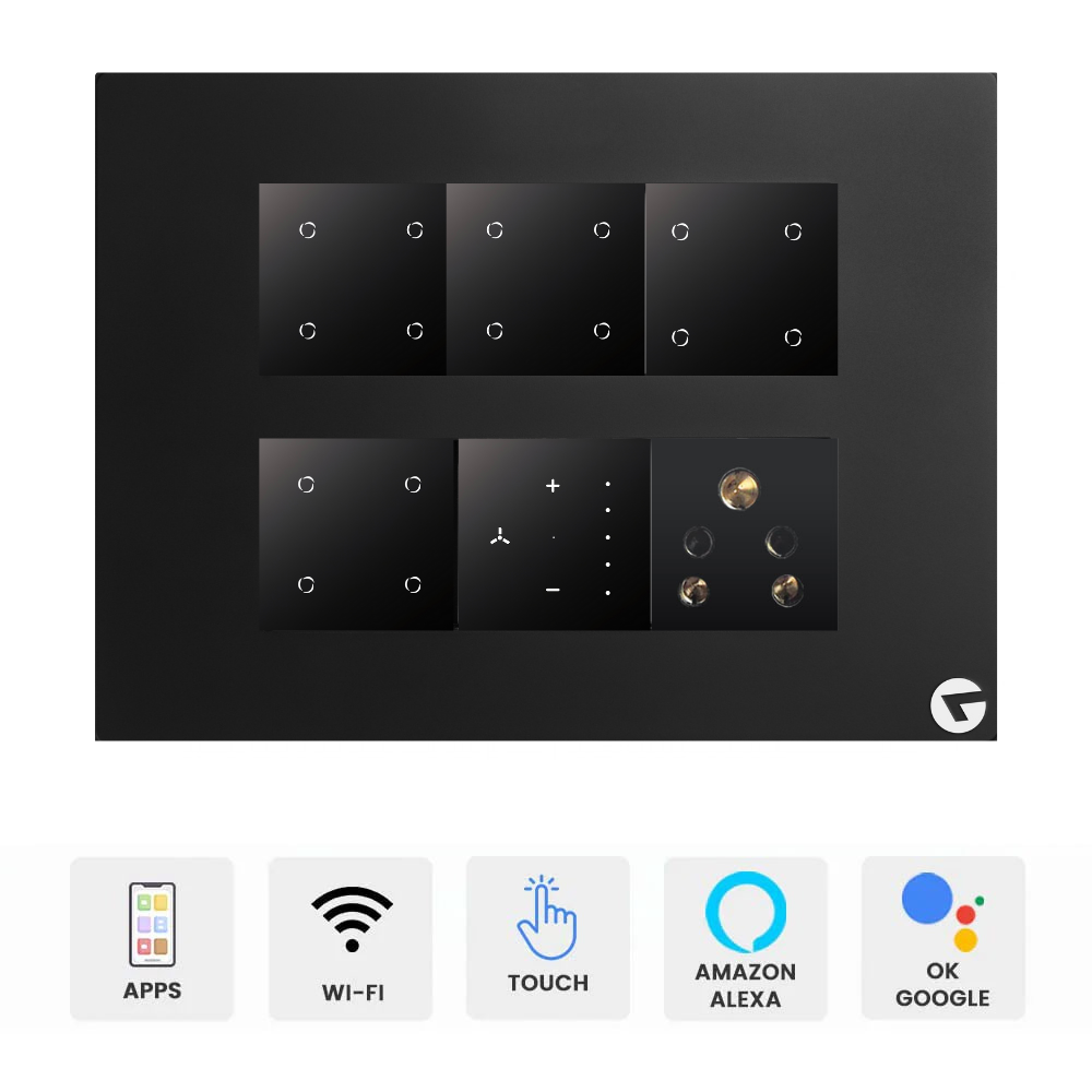 ✅ 16 Modular Configuration – 15 Smart Switches + 1 Smart Fan Regulator + 1 Smart Socket.