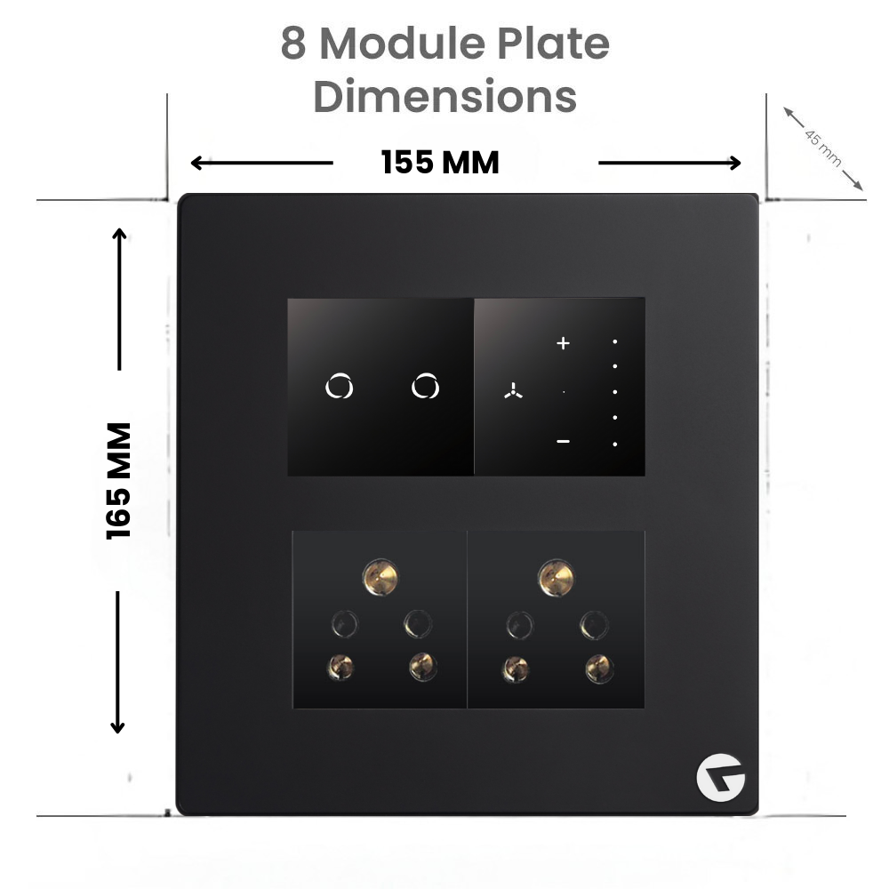 The L&G 8 Modular Smart Switch Board (Horizontal) is ideal for everyday power needs such as lights, fans, plugs, lamps, and televisions. Designed by German engineers to meet Indian standards, this smart switch panel blends modern technology with durability and style.