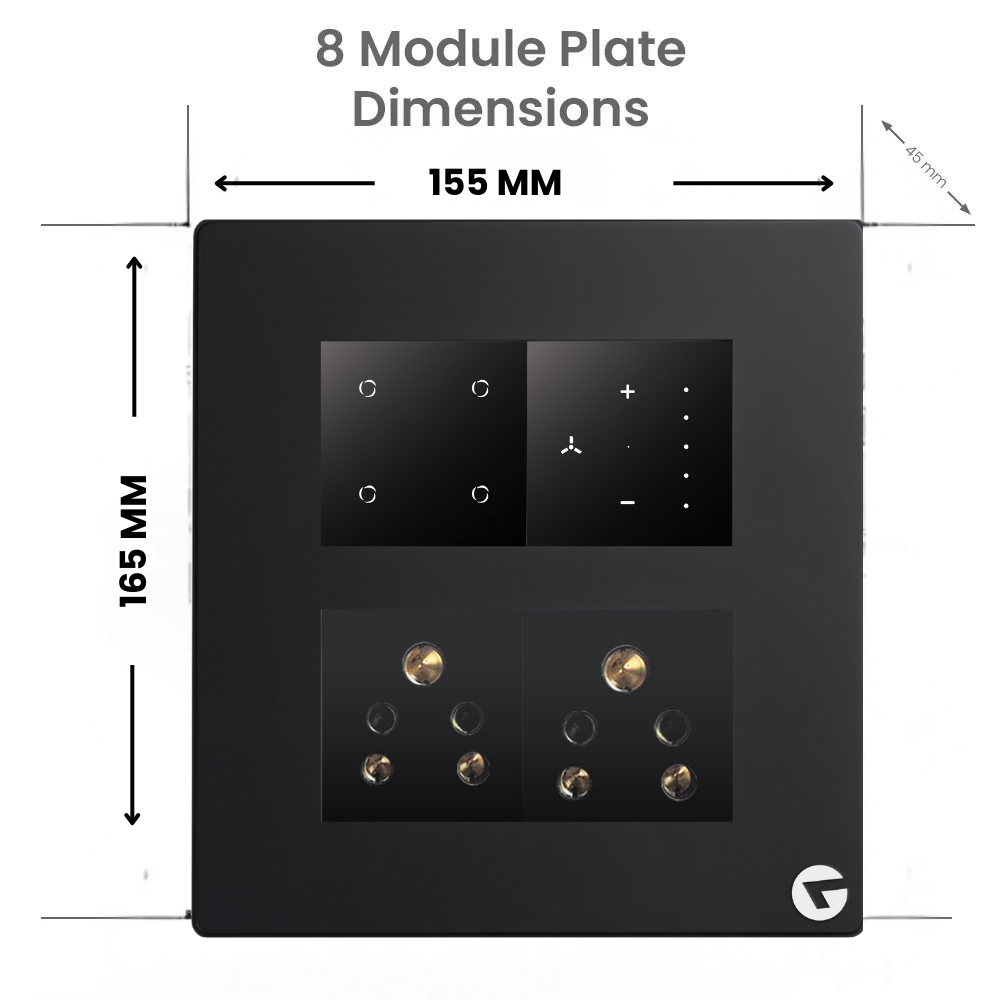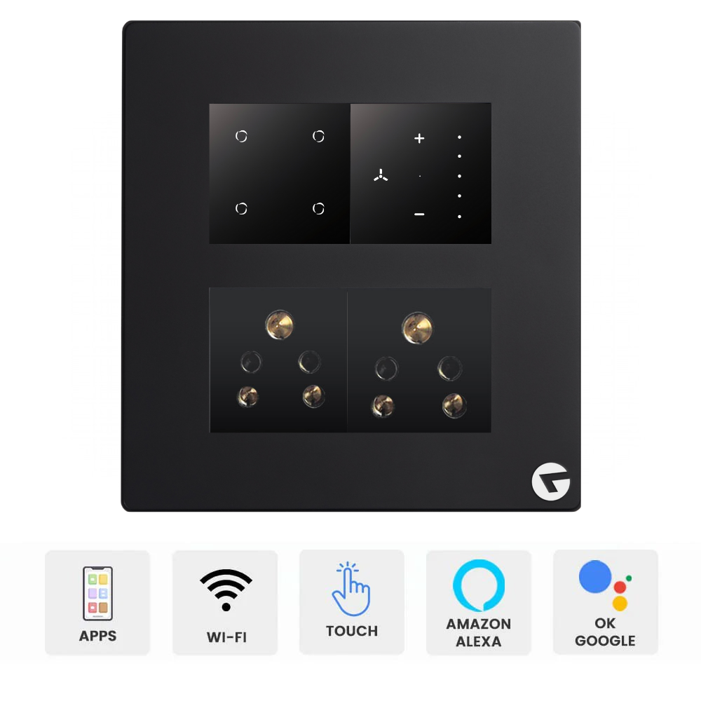 The L&G 8 Modular Smart Switch Board (Square – Vertical) is a premium smart home solution designed with German technology and built to meet Indian standards. Perfect for everyday electrical needs like Lights, Fans, Lamps, Plugs, and Televisions (TVs), this smart switch board brings both style and functionality to your home.