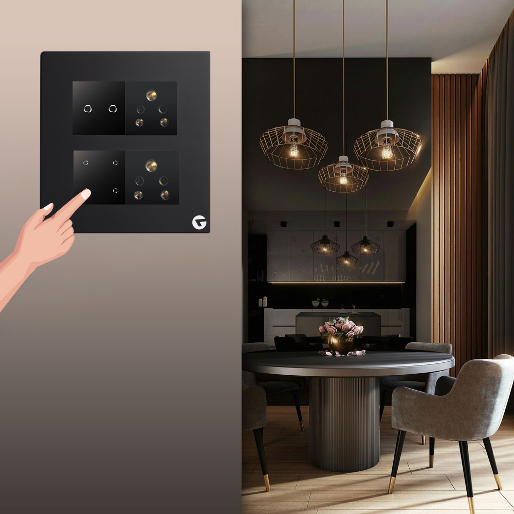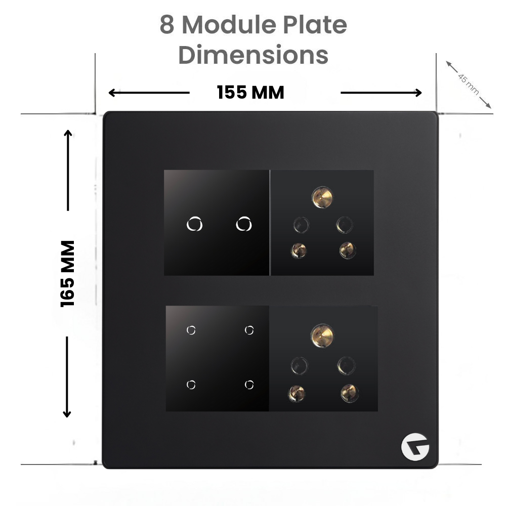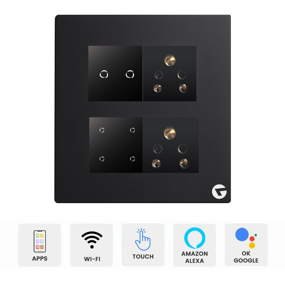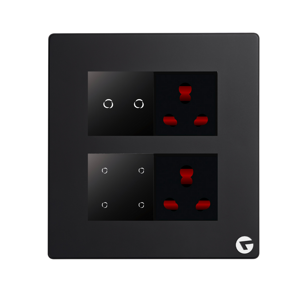 The L&G 8 Modular Smart Switch Board (Square – Vertical) is a premium WiFi-enabled smart switch panel, designed with German engineering and crafted to meet Indian standards. Perfect for managing daily needs like Lights, Fans, Lamps, Plugs, Televisions (TVs) and even high-power appliances with the integrated 16A Smart Switch.